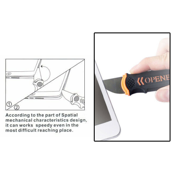 Njegova fleksibilna oštrica od nerđajućeg čelika omogućava joj prodiranje do najmanjih praznina između kućišta i na taj način ih otvori.